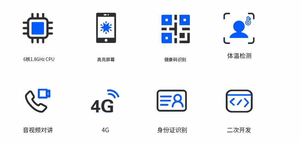 天波人脸测温健康码核验终端F2T内置的6核 1.8GHz CPU,瑞芯微RK3399 方案有着强大的硬件平台,保证设备的稳定运行。