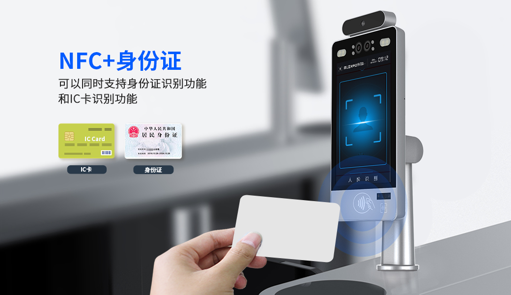 天波人脸测温健康码核验终端F2T,支持定制NFC刷卡功能,支持ISO14443 A/B型,兼容ISO18092。天波人脸识别终端F2能够定制采用混合身份识别,将二代证阅读功能与人脸识别功能配合使用,为用户提供更高效的识别环境。