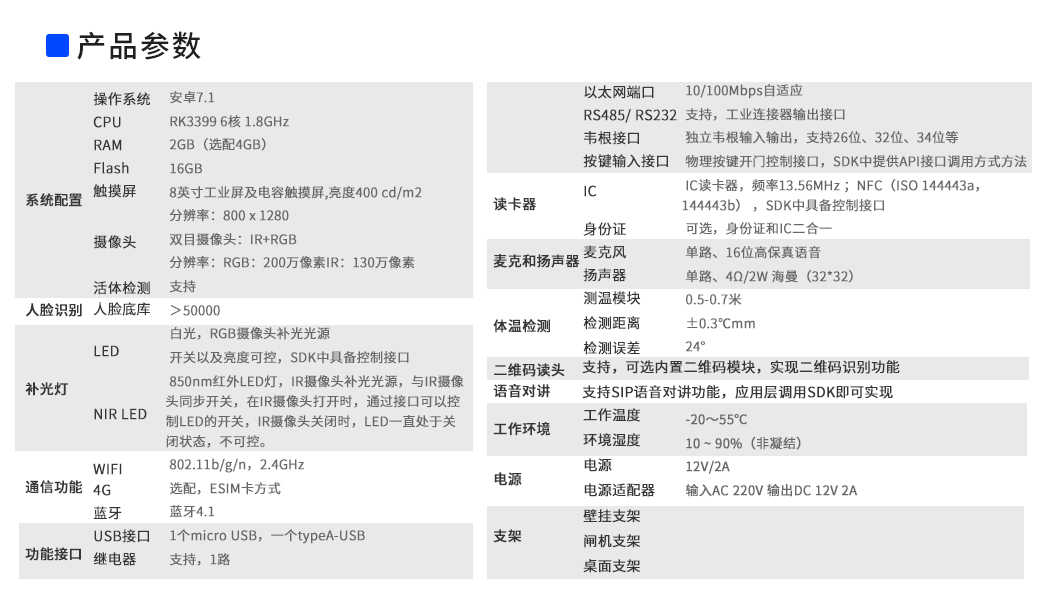 12,多安装方式:支持壁挂、闸机、落地、桌面支架安装,满足不同应用场景需求