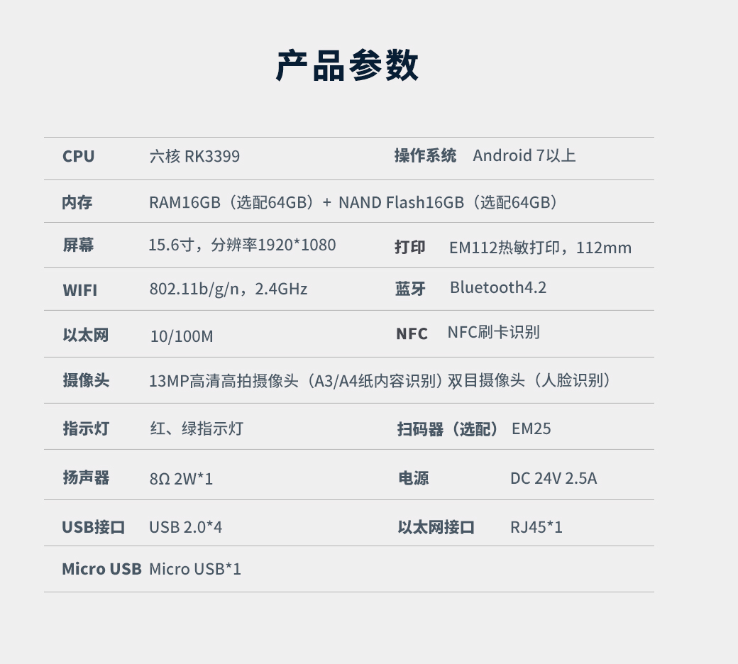 广东天波“智能自助打印终端”是一款融合高清拍摄摄像头、人脸识别、扫码识别、刷卡识别自助打印一体的自助服务设备。采用RK3399 6核处理器,搭载Android 7以上操作系统,配置15.6英寸触控显示屏,超高配置设计,性能稳定可靠。配备双目摄像头可实现人脸识别功能,支持二维码识别、NFC识别,支持112mm热敏打印功能,广泛适用于试卷内容电子化收集/上传、校园错题打印等业务场景。